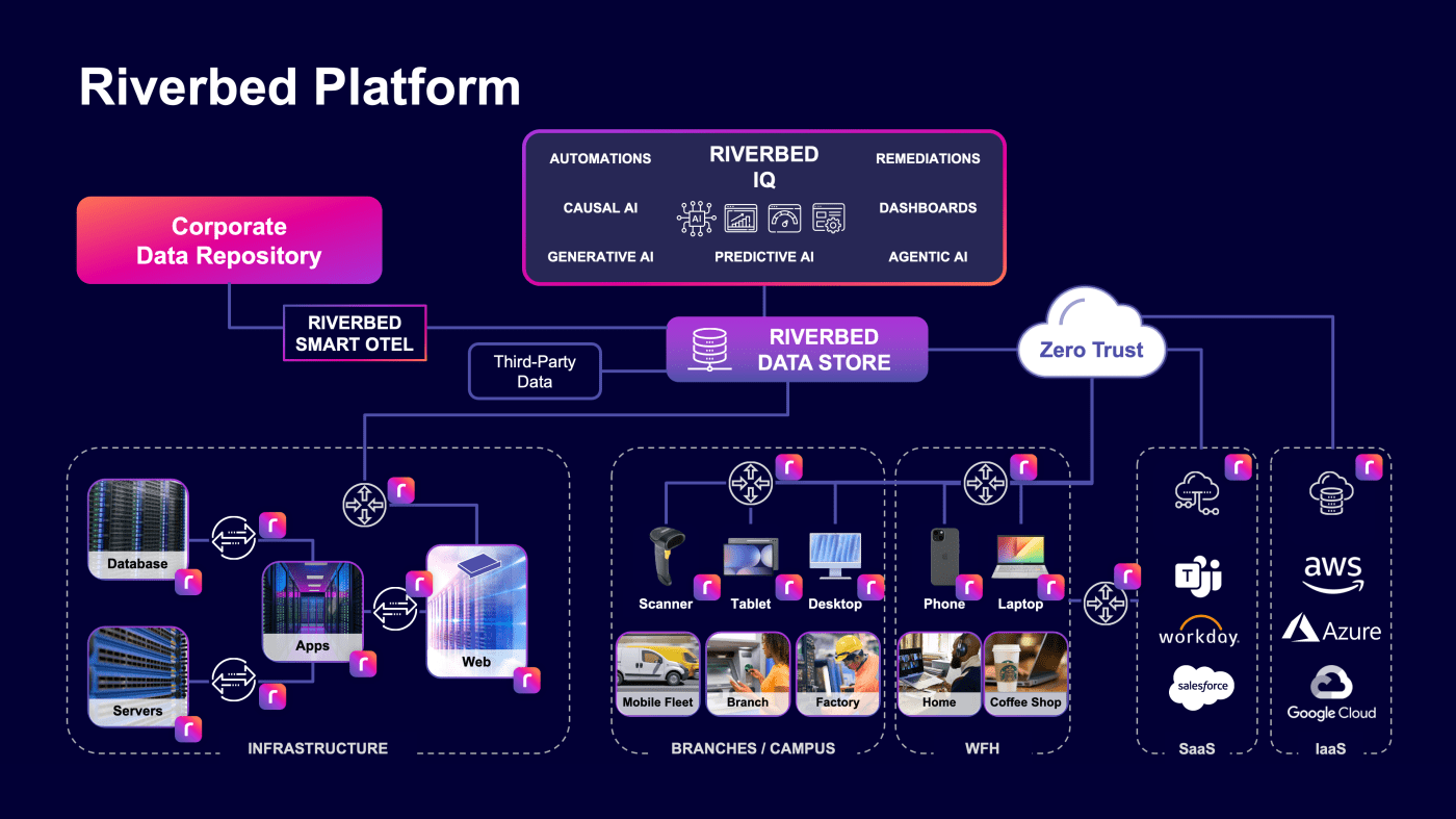 Launched in 2024, the Riverbed Platform delivers a powerful alternative to fragmented point tools by unifying observability across enterprise IT into an open AI-powered architecture. It provides full-stack, full-fidelity visibility across every layer of the digital enterprise—including applications, networks, endpoint devices, digital employee experience (DEX), public cloud, zero trust, and mobile environments—far beyond the narrow scope of typical monitoring solutions.
